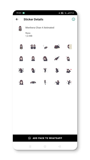 Each package contains 10-30 animated stickers. Just pick one of pack and import for Whatsapp