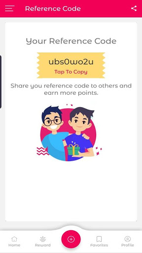 - Share your reference code to others and get reward points for every user registered with your reference code.
