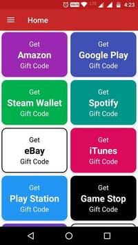 We are Generating Codes for gift card Amazon,Spotify,GameStop,Steam Wallet,Google Play,EBay, ITunes,Game Twist, Xbox,PlayStation Get Free Discount with Our Online Dummy Gift Code Cards Generator App