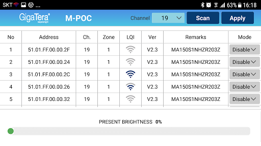 Can change two modes such as enable and disable when GIGATERA lighting product is installed. Can read current light value. Can set On/Off light intensity(LUX) limitation
