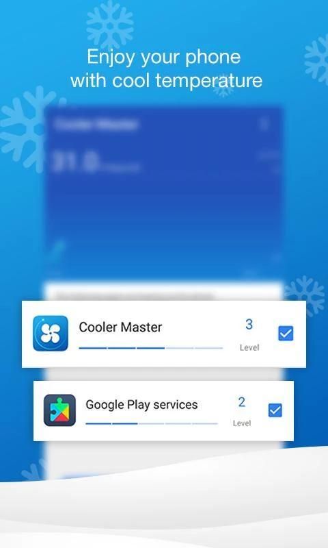 - Support to cooler for mobile phone, android device cooler and speed up for android