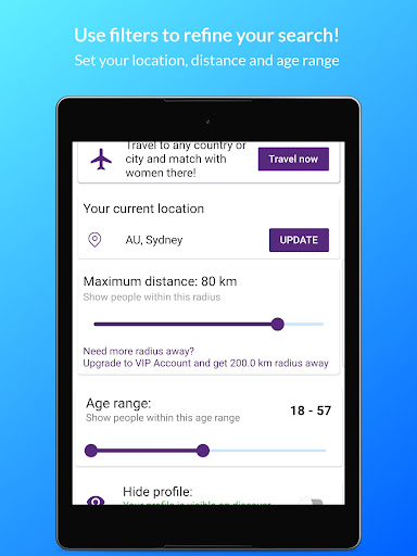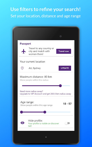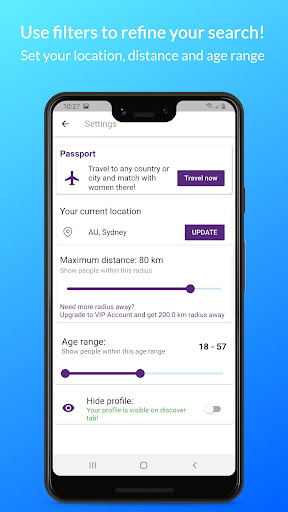 💕 SEARCH FOR PARTNERS OR FRIENDS NEARBY – Find friends or women in your area for chat or hook-ups. You can also extend the search radius to get more possible matches. Press the Discover Icon and get matched with girls around you. You can easily control the preferred distance of your matches from the settings tab.