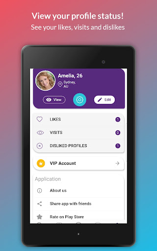 💕 STATISTICS. We provide a statistic of total likes, visits, dislikes. You can also press Matches and view who you are matching with.