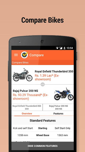 ✔ Bike Comparison – Explain better features of a bike to your customer. Comprehensive Bike comparison feature.