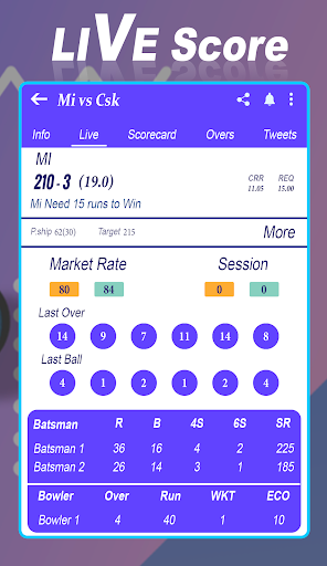 CricketScore - Cricket Magic Line Score mobile apps shows ball by ball all international tests, ODI, T-20 and recent cricket matches. Cricket fast live line mobile apps shows all the international and domestic cricket season Tri series T20 series ODI and other matches. Cricket Live Line also provides full scorecard to get complete detail of players runs, wickets and cricket live line score app. This app provide fast live line cricket app and also cricket match live. It is live cricket scores of this most popular apps. It is live cricket streaming upcoming feature for this application ipl match ki list.