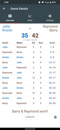 Keep score of bid euchre games, share games with friends, and track stats!