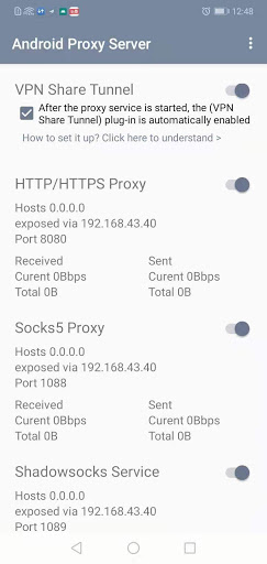 After VPN is turned on on some mobile phones, it is impossible to share the VPN service on the mobile phone through the local area network or hotspot. This plug-in can solve this problem. Please use it with the application "Android Proxy Server" or "VPN Proxy Server:Tether No Root "