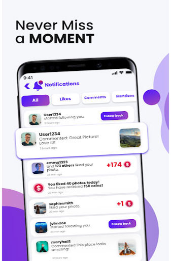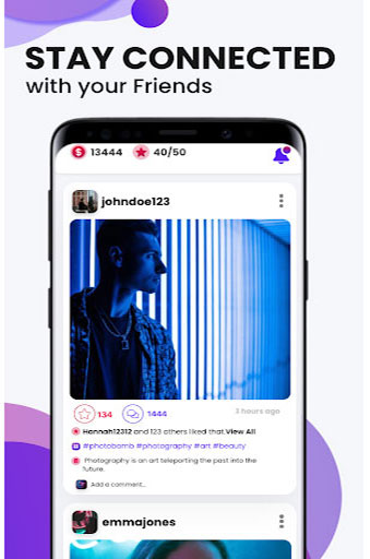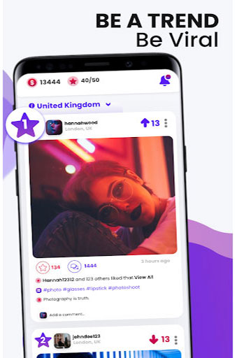Customize your photo, add hashtags and description. Follow whatever topics you are interested in. Find new friends. Be viral, be a top trend and make a few extra bucks. Like and be Liked.