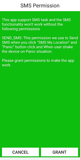 SEND_SMS: This permission we use to Send SMS when you click “SMS My Location” and “Panic” button click and When user shake the device on Panic situation.