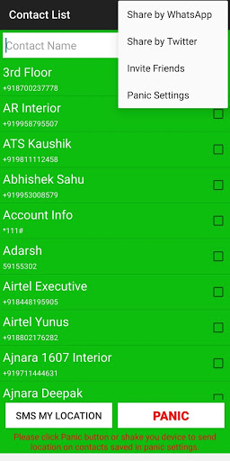 Share your location in emergency through SMS, WhatsApp, Twiiter and other apps. Also in case of panic situation by clicking the Panic button or by Shaking the device.