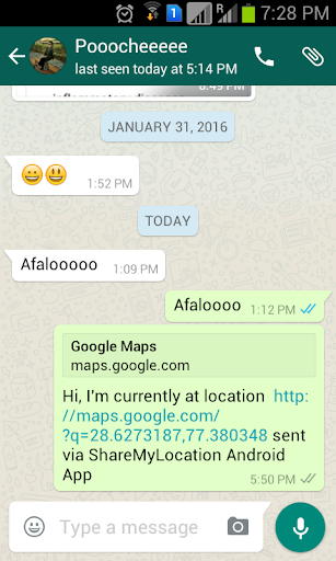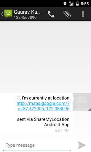 Share your GPS location with family and friends through SMS, WhatsApp and other apps. Also Save and Check other's location. Download updated latest version from this URL https://play.google.com/store/apps/details?id=com.gk.sharelocation