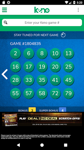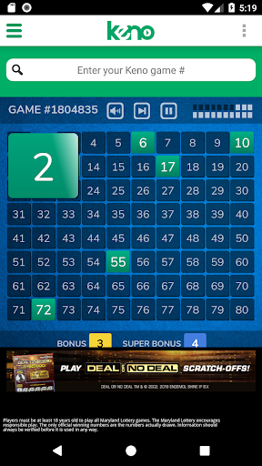 The official Maryland Lottery Keno and Racetrax app was created for players to watch real-time Keno drawings, search for past Keno and Racetrax results, review payouts, check out recent “hot and cold” numbers, and more.