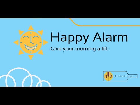 While there have been many challenge‐based alarm clock apps released recently, Happy Alarm leverages the fast paced nature of our Red or Blue game, and numerous inspiring photos from our in‐house photo library. The app also benefits from months of effort from the Glass Bottle Apps team to perfect the user interface. It is easy to set an alarm, and once the alarm starts ringing, the user must answer a set number of questions correctly in a row, or the counter resets. The win threshold is adjustable, depending on just how much stimulation is needed.