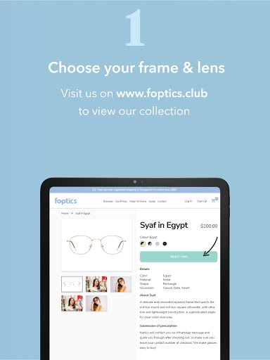 Step 1: Visit www.foptics.club on your computer to choose your frames