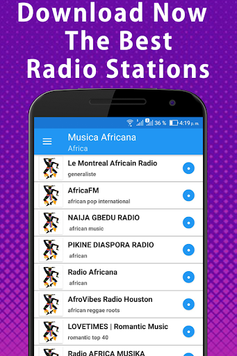 With this afro music you can enjoy and download the best radio stations with joyful melodies, moved from the African continent 2018/2019 tune them totally free like: lovetimes romantic music mp3 hits, east africa radio, bongo radio african grooves, afrovibes radio houston, pikine diiaspora radio, najia gbedu radio, africa fm, egbaalake radio, valley fm south africa, sunuker fm: the first african radio, radio veritas south africa, xlive africa, radio renndo, vibe radio malawi, radio afric-aye, radio africa musika, topnaija music radio, voice of africa, afromix radio, african praise radio, africa live radio, radio africa, le montreal africa radio, africa u radio, afropulsefm 64kbps stream.