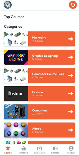 Learning app for skill training. Access to all our classes and content for various courses in computer education, fashion, digital marketing, etc