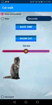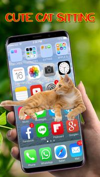 Cute Cat Walks on screen prank - Joke 2019 has many settings that allow you to customize your kitten appearance. You can decide whether your cat will keep medium size and you can change the cute kitten size.