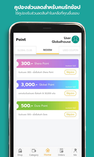 - สะสมหรือแลกคะแนน Global Club ได้ง่ายบนมือถือคุณ