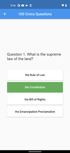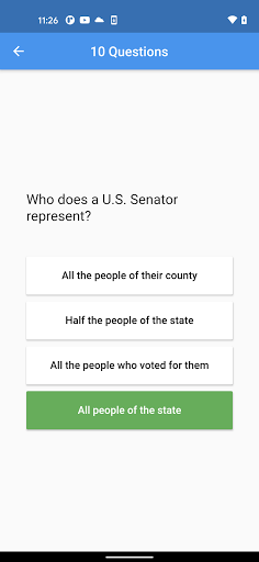 The app is a study tool to help you prepare for the U.S. citizenship interview. In order to become a US citizen, you will need to answer at least 6 out of 10 questions correctly.
