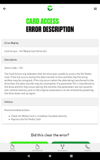 Diagnostic Tool is a fast and simple tool, which allows users of Control Techniques' drives to quickly solve any error codes that the drive may show. Built within the app are easy to locate wiring diagrams for first time setup and fault finding with links to the relevant comprehensive manuals. The app also has full contact details of the technical support teams around the world to aid you with technical assistance.