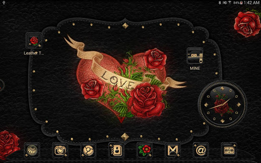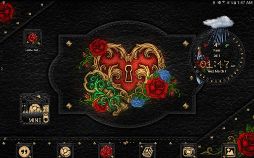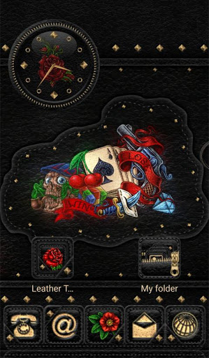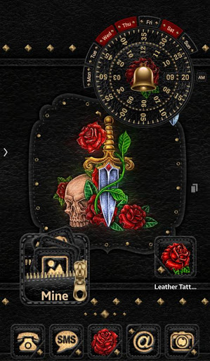 Press desktop > Widgets > scroll > Leather Tattoo Theme > Leather Tattoo clock