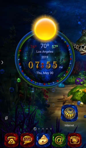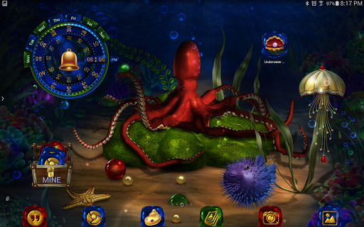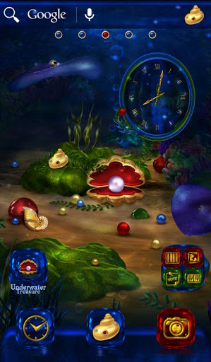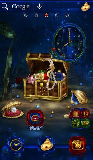 Press desktop > Widgets > scroll > Underwater Treasure Theme > Underwater Treasure clock