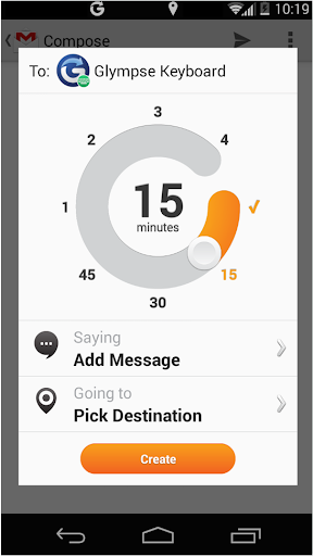 Full Keyboard - for the power user, this option replaces your current keyboard and ensures even faster location sharing! Compose messages as usual, and when you’re ready just press and hold the “G” key to create your Glympse.