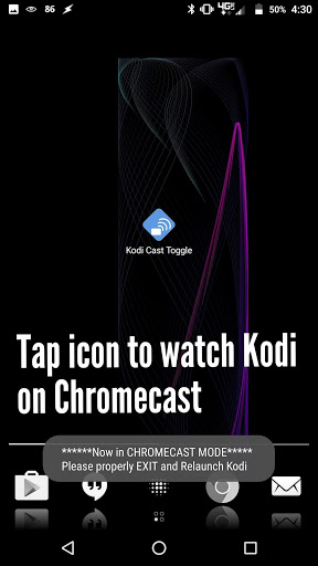 1.10 Added notification toast and banner executed on Kodi launch to let user know what current state the Kodi Cast Toggle is in.