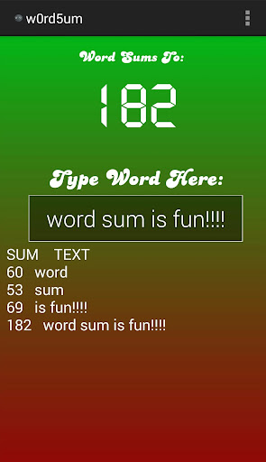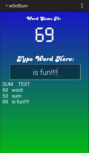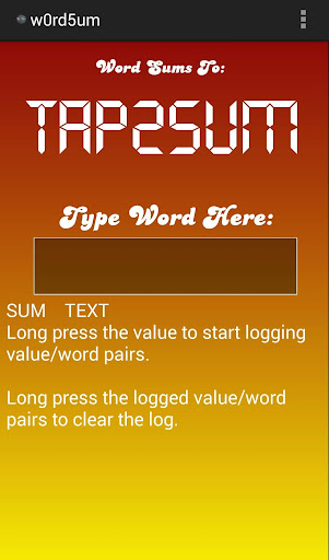 ☆ Pro Version allows you to log your word sums in the app as well as to a .CSV file!