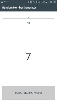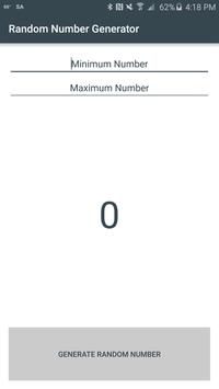 Generate random numbers instantly and easily. Features: -Specify minimum and maximum number -Material design -Ad free -Lightweight (~1MB) Leave a review or contact jacejfrancis@gmail.com if you have any problems or suggestions.