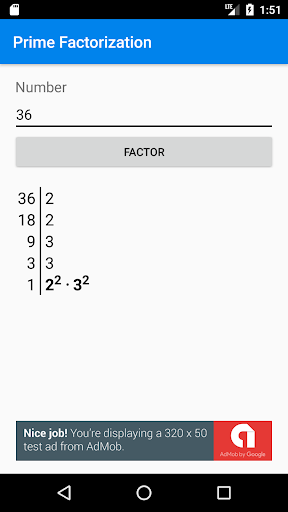 This app does decomposition of a natural number in a product of prime factors using exponential notation.