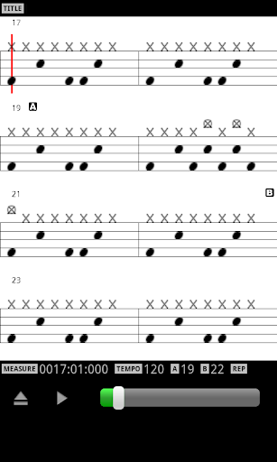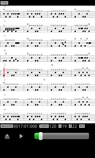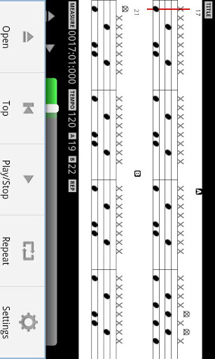 This application can display the drums score while playing the MIDI files on the SD card.