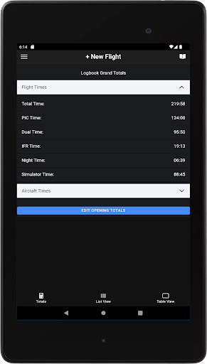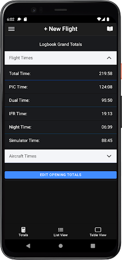 Table view to replicate your paper logbook with running totals