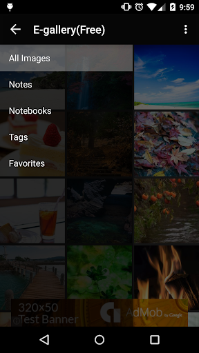 - Select 5 views: all images, notes, notebooks, tags, and favorites
