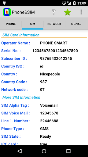 ❷ SIM: SIM card information about operator, card number, country code, phone type etc.