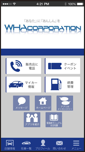 名古屋市西区アメ車専門店WHA CORPORATION 更なる「あなた」に「あんしん」をお届けするために役立つアプリをリリース致しました。 【主な機能】 1.緊急時対応マニュアルと豆知識 2.緊急時連絡先電話帳とその登録 3.在庫一覧の閲覧 4.新入荷のお知らせ 5.最新お得情報のお知らせ