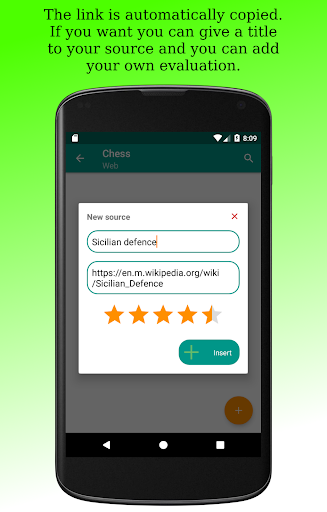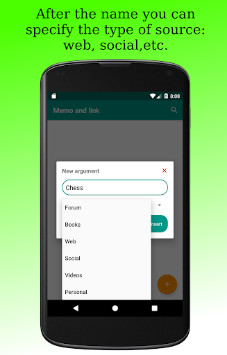 - choose the source (Books, Forum, Personal, Social, Video, Web)