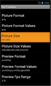 Another simple camera app for your mobile with the advantage that it can list all the available settings of your hardware, allowing to change the values so you have full control. The problem is that it does not check when you enter invalid values. But at least you can see all the real properties of your camera.