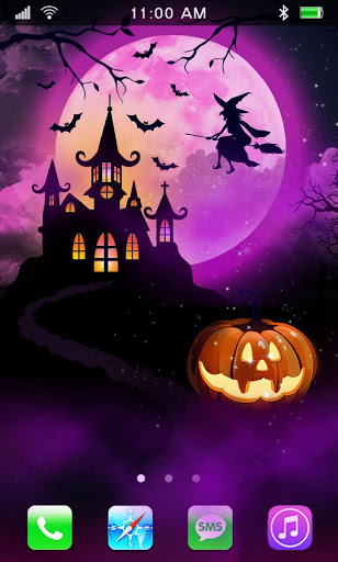 The new version of the interactive wallpaper Happy Halloween Live Wallpaper proposes the use of horizontal and vertical formats. At the demonstration images to the application Happy Halloween Live Wallpaper shows the typical options of the application.