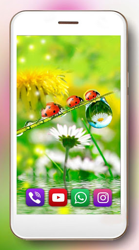 The application Spring Fantasy live wallpaper contains an interactive effect of water droplets on the glass. Drops of water on the phone's glass are scattered in a random order. At the touch of a drop, the dew changes the trajectory of motion.