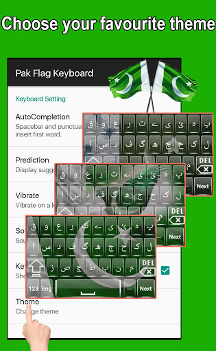 Pak Flag KeyBoard include Pak falgs.simplfy press the themes button and choose the flag which is your favorite falg.