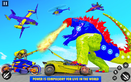 Real feeling of robot transforming games with amazing sounds of Godzilla Robot Transform Car Robot Rampage Game and shooting techniques of air jet car robot transform game