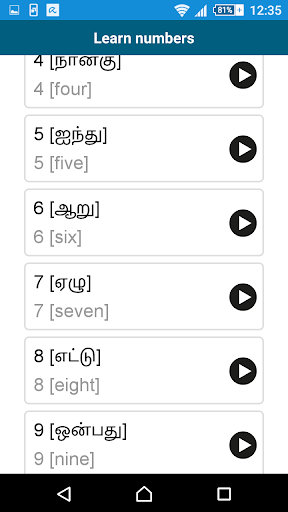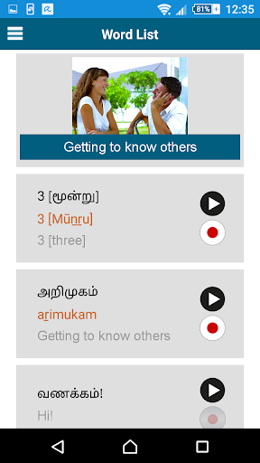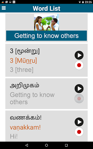 Learn Tamil! - "50 languages Tamil" (www.50languages.com) contains 100 lessons that provide you with a basic vocabulary of the Tamil language. This free app has 30 lessons. With no prior knowledge, you will learn Tamil and fluently speak short Tamil sentences in real-world situations in no time.