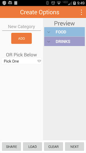 2) Create Options: Type a Category and click Add(Ex: Food, Drinks)