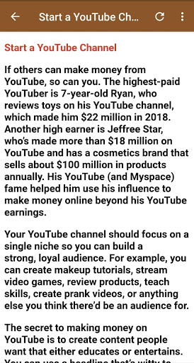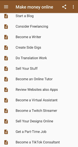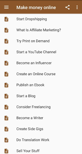 this app will be like a pocket dictionary but a dictionary for the best ways to make money online and it is between your arms and will be your friend in every time and every place you go to .