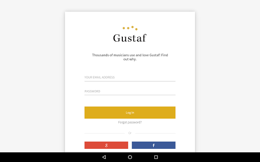 Gustaf enables you to use digital sheet music securely and legally. The application offers a host of features that will make life easier for musicians. For instance, Upload you own your scores and store online, various viewing and annotations tools (mark, zoom, edit, notes, transpose, etc.), a metronome function, tuning device, etc. The scores are responsive and automatically adapt to the screen of your device. The Gustaf App will work both online and offline. Gustaf is a product of neoScores, established in July 2013 by musicians for musicians.