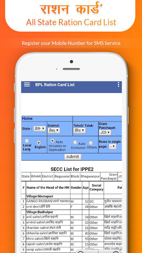 Online Ration Card App is developed to find online ration card, BPL List, AAY List, NFSA List, Non-NFSA List, e-Ration Cards issued by food department All States. This is all in one android app for APL Ration search, BPL Ration Card search, BPL list, AAY list, NFSA list, Ration card status, Ration dealer status, FPS code name, FPSA owner location. All information displayed in this app is loaded from the website of food and supply department, Indian Ration Card List.