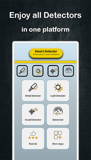 In Smart detectors we provides four detectors. Metal detector or Gold detector ,Light sensor or Light detector, Sound meter or sound detector and Barometer.