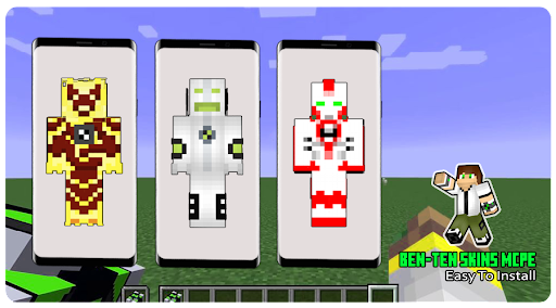 The ben ten-10 mod for mcpe is very easy to use by all ages because just click install you can already install this skin in your application or you can click the download button if you want to download and send it to your friends, it's pretty cool not the skin from ben alien mod for accompany you in the mcpe game, because it is very complete and there are many popular skins that you can use to make your game more exciting.