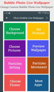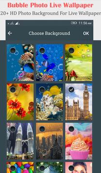 Bubble photo live wallpaper lets you create cute bubbles of your photo, You can select beautiful background from the collection and also you can add more bubbles on screen